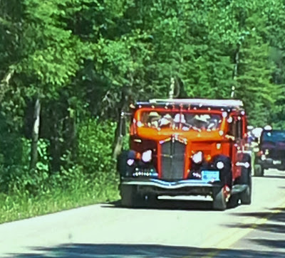These are interesting tour cars run by the Park. They seat somewhere between 12 and 16 people. They appear to be 1930's vehicles, but I believe they are pretty modern. They are manufactured by Ford and run on propane fuel.